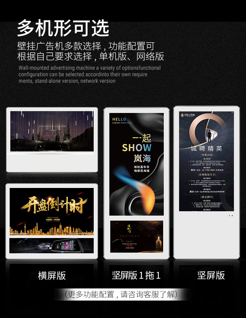 在一些高檔寫字樓、專賣店、地鐵車廂、金融珠寶店、酒店的電梯門前掛著液晶廣告機,播放一些汽車、房產、中高檔服裝和化妝品、珠寶首飾等廣告,此外,還包括國內外重大新聞和時尚資訊。出入這些高檔樓字的人群通常都是高級職員、白領階層經理、老板高層級人物,對于視時間如金錢的他們,一些人認為這樣可以充分利用等候電梯時間,從等候電梯口液晶廣告機中獲取一些有價值的信息。